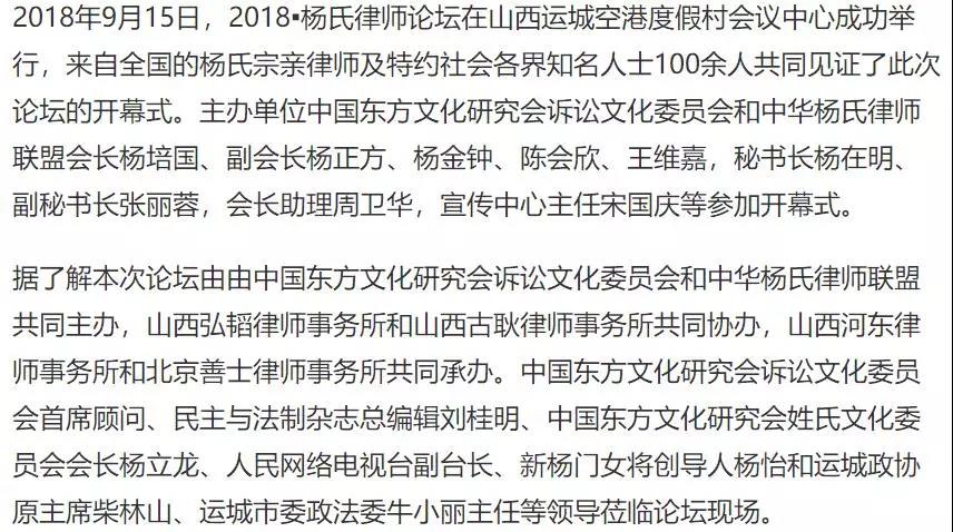 2018 ·杨氏律师论坛开幕式在山西运城举行