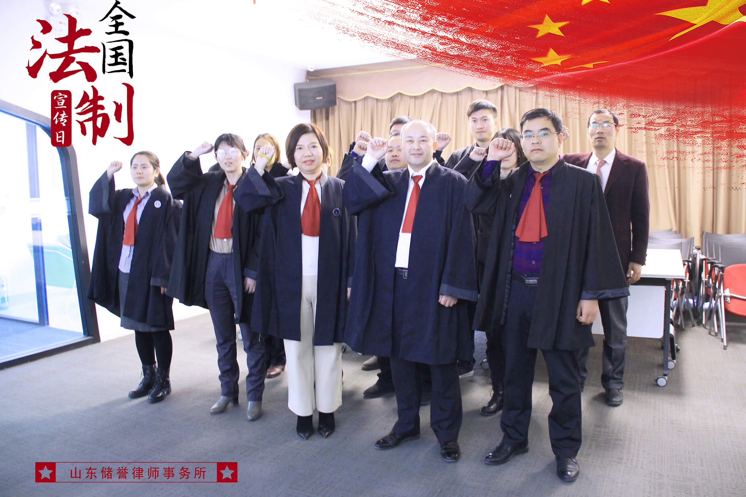 今年是第6个国家宪法日,为培育律师的职业精神,增强律师的职业感与荣誉感,山东储誉律师事务所开展“12.4国家宪法日”律师集体宣誓活动。宣誓领誓人为由山东储誉律师事务所副主任、高级合伙人贾平律师。