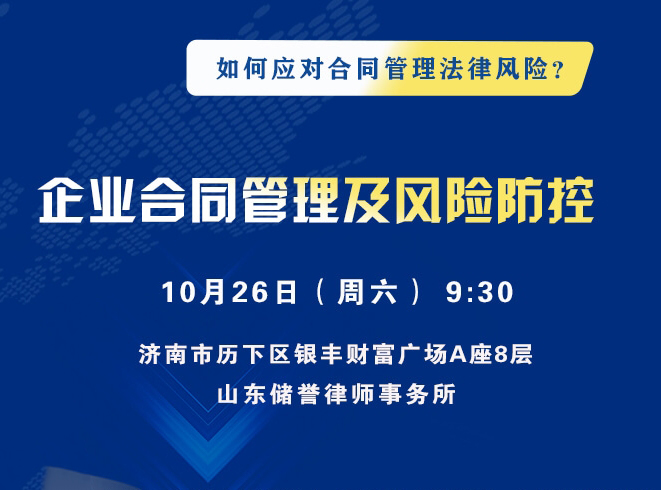 为帮助中小企业适应新旧动能转换的市场经济发展新形势,全面提升经营管理者的综合素质,进一步规范合同的签订和履行,以及防范经营活动中的各种法律风险,山东省中小企业信息中心、济南市中小企业公共服务中心和我山东储誉律师事务所联合举办第二期中小企业法...