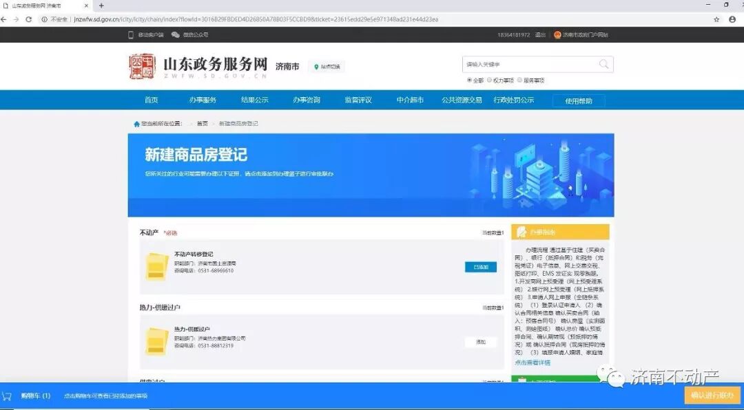 “您购买的××楼盘房产可以自行办证了,请登录山东省政务服务网实名认证,申请办理新建商品房买卖业务……”